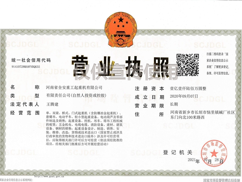 歡迎訪問河南省全安重工起重機(jī)有限公司官方網(wǎng)站!